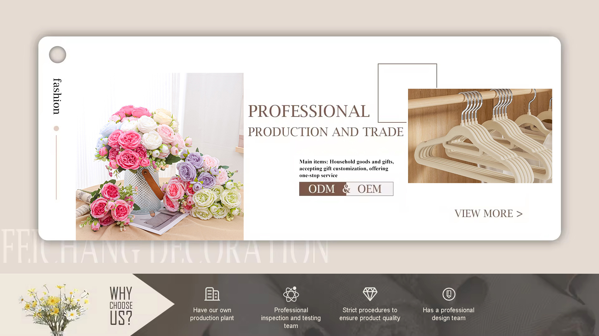 Ana ürünler:Günlük ihtiyaçlar, depolama malzemeleri, simülasyon çiçek, ev tekstili, el sanatları